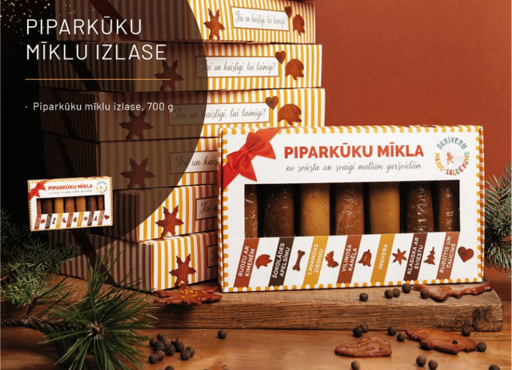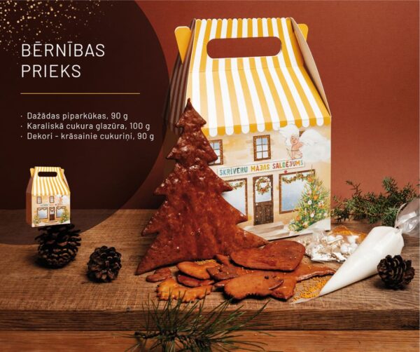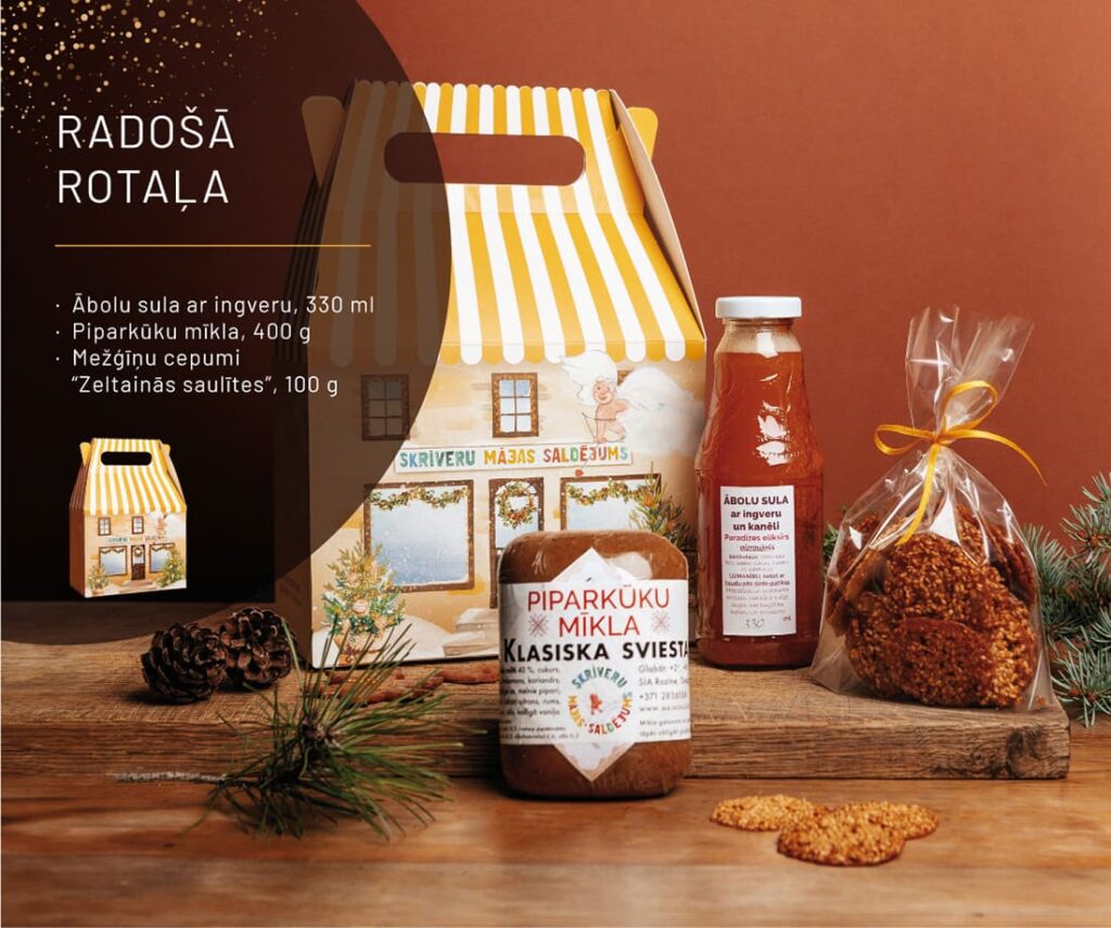 - Kaste ar oriģinālu dizainu, sarkana atlasa lenta un sveiciena kartiņa.