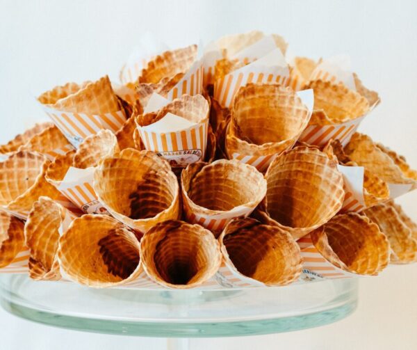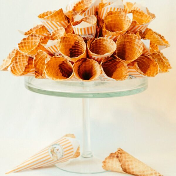 Saldējums, tavas vafeles izplaukst par naudu uz visiem pilsētas stūriem, tavas vafeles, brīnišķi dzeltenās kā tējozes bulvāru veikalos sārtās kā asinis, kā dāmu lūpas un auto naktsnumurs. / ”Saldējums” Aleksandrs Čaks Sastāvdaļas: Cukurs, kviešu milti, olas, sviests, kartupeļu ciete, sāls, rums un kaifīgā vaniļa. Mūsu roku darbs un izcils papildinājums saldējuma baudīšanai. Cepam svaigas ik reiz, kad nepieciešams. Uzglabāšanas apstākļi: Sausā vēsā vietā, noslēgtā traukā. Tomēr iesakām tās neglabāt nemaz un baudīt svaigas!
