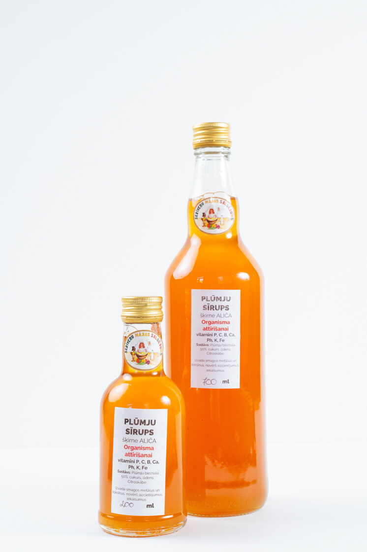 Sastāvdaļas: plūmju biezsula (50 %), cukurs, ūdens, citronskābe. Pildīta stikla pudelē.