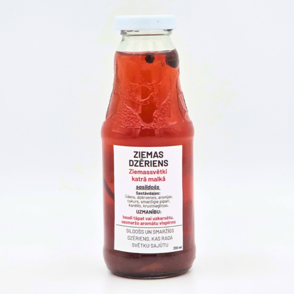 SASTĀVDAĻAS: Ūdens, dzērvenes, aronijas, cukurs, smaržīgie pipari, kanēlis, krustnagliņas.